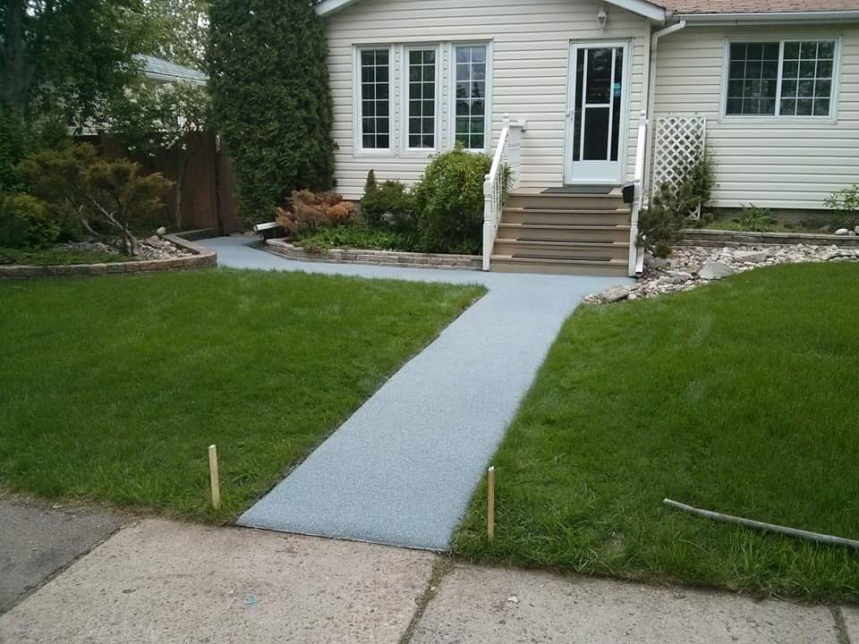 Rubber paving is a durable, flexible surface made from recycled rubber—like the material used in playgrounds and gym floors. We install it directly over existing concrete or asphalt, even if it’s cracked or damaged, to create a smooth, modern, and slip-resistant finish for your home. There is no need for demolition. It’s an eco-friendly and cost-effective way to transform old surfaces into something strong, safe, and visually appealing. Available in a variety of colours and blends to match any space.