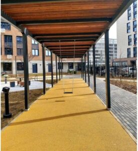 - Shock Absorbing – Rubber paving absorbs impact, helping reduce injuries from slips or falls.